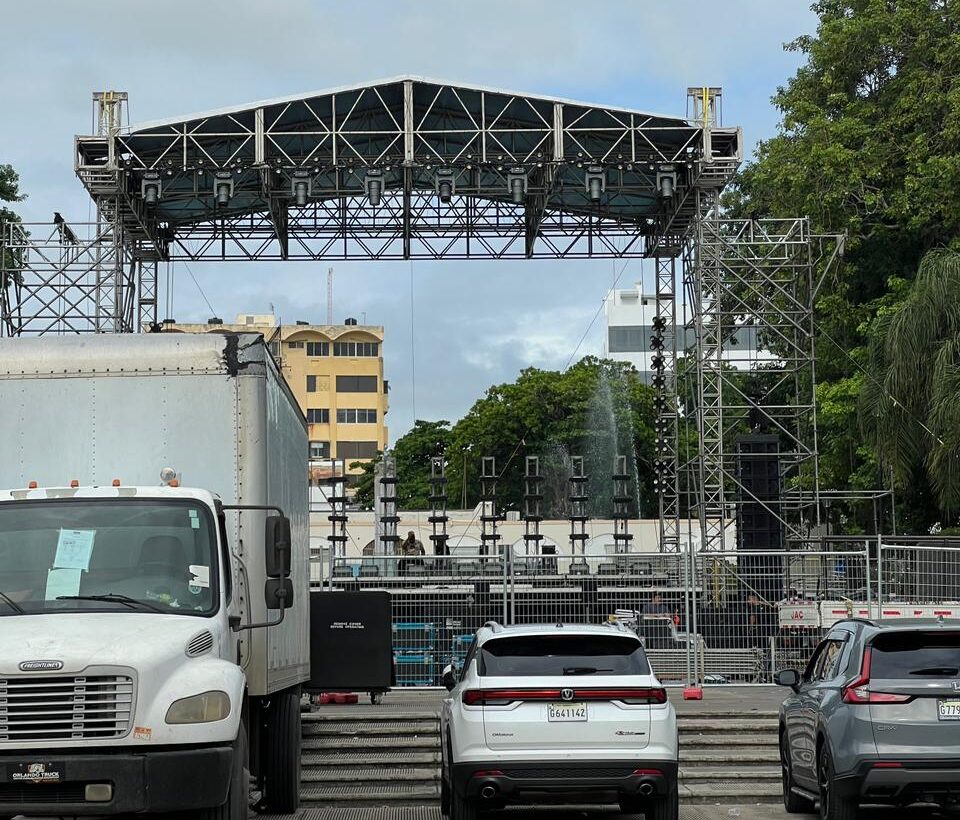¡Casi listo! Montaje del concierto gratuito de Rauw Alejandro en el Parque Eugenio María de Hostos
