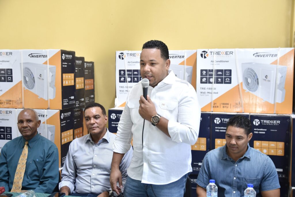 CAFÉ DIARIO, MOCA.- Fermín Muñoz, director distrital de La Ortega en Moca, hizo entrega de 52 aires acondicionados tipo inverter, destinados a climatizar la totalidad de las aulas y oficinas de los centros educativos de la comunidad, convirtiese en el único distrito municipal de República Dominicana donde todas las escuelas públicas contarán con aires acondicionados.