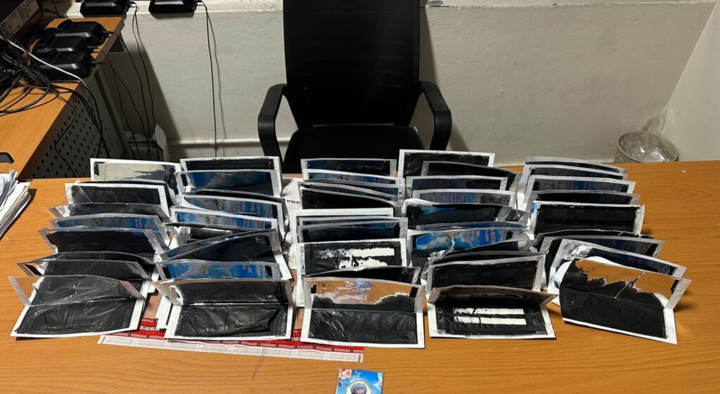 “La droga, envuelta en papel carbón, fue hallada en un doble fondo dentro de los recordatorios forrados con cinta pegante, otra modalidad de los narcotraficantes para tratar de burlar los controles de vigilancia y seguridad en las terminales del país”