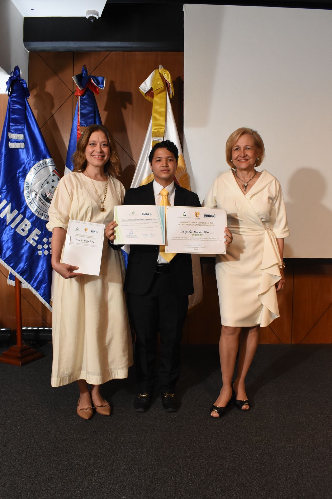 Primer lugar: Diego Gabriel Acosta Díaz (Colegio Dominicano De La Salle). Beca completa estudios universitarios en UNIBE (auspiciadas por la universidad y la Fundación Farach).
