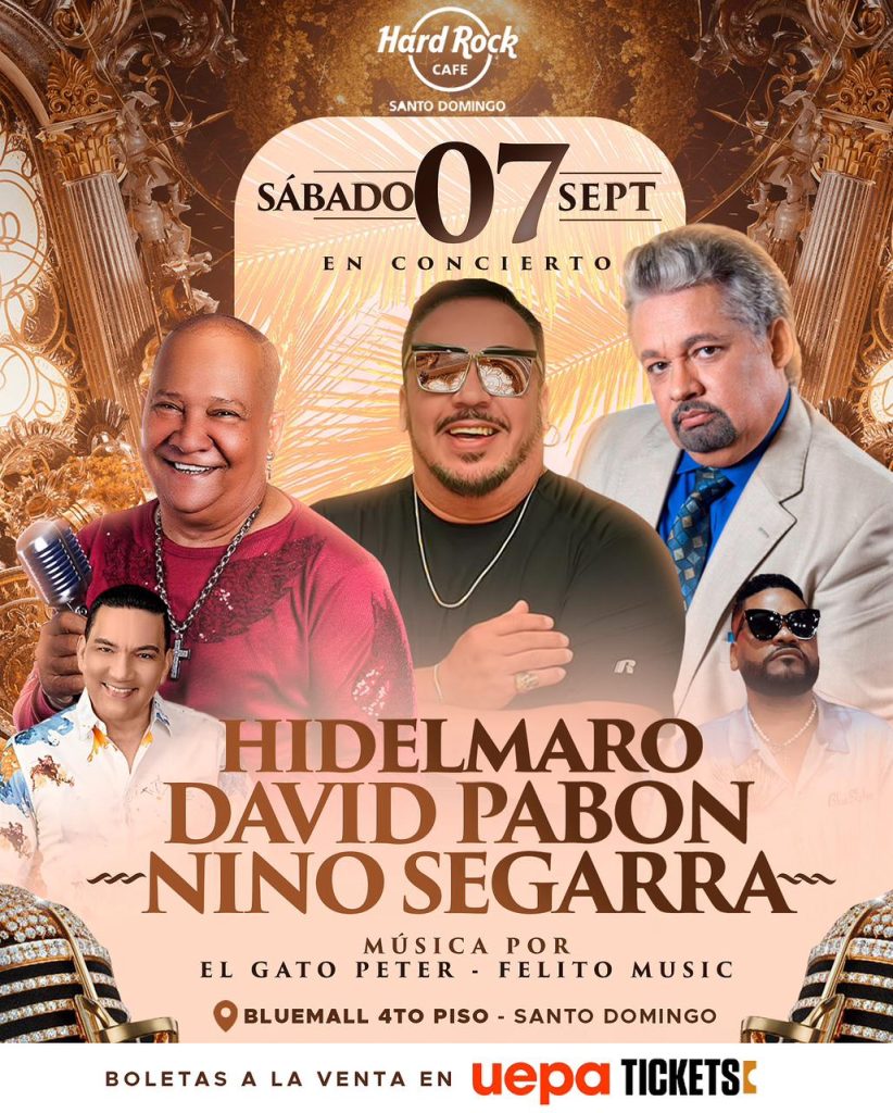 CAFÉ DIARIO, SANTO DOMINGO. – Los amantes de la salsa boricua y venezolana están de enhorabuena. El próximo sábado 7 de septiembre, el emblemático Hard Rock Café Blue Mall Santo Domingo será el escenario de un espectacular concierto que reunirá a tres grandes figuras del género: Hidelmado, David Pabón y Nino Segarra.