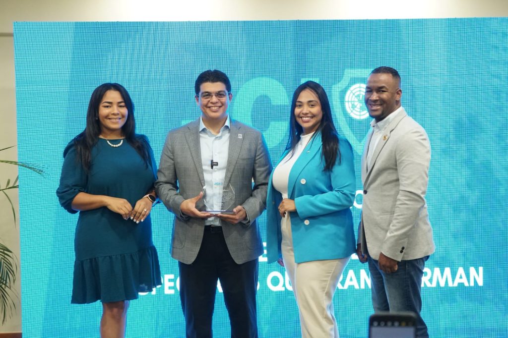 Durante el Jaycees´72 Talks: Perspectivas que transforman, la presidenta de la organización, Ámbar Guillermo, entregó un reconocimiento al director de la CAASD por su invaluable contribución al desarrollo de las comunidades del Gran Santo Domingo.